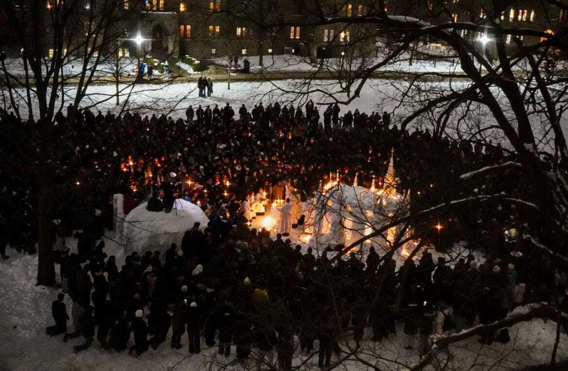 A student-built ice cathedral at Notre Dame